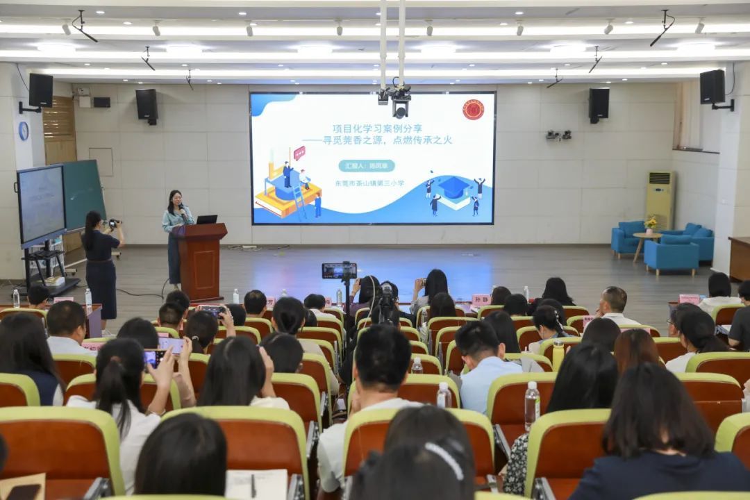 活动现场,茶山镇中心小学教师谢伟标带来科学课例《太空种植家》,结合智慧教育平台与人工智能技术,生动呈现跨学科教学实践;茶山镇第三小学陈凤章分享了获评中国教育科学研究院2024年项目化学习优秀案例《寻觅莞香之源,点燃传承之火》,凸显本土文化传承与创新。